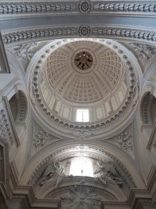 E’ proprio la cupola l’elemento dominante della chiesa: una costruzione rotonda, imponente, a doppia calotta, traforata da un elegante loggiato costituito da sette arcate il quale lascia un corridoio di passaggio di circa un metro.