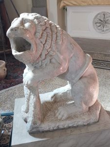 Tra il 1868 e il 1869 la chiesa subì un’ulteriore trasformazione con la realizzazione di un nuovo ambiente laterale, che comportò l’apertura e la demolizione di due altari sul fianco ovest della navata centrale. La nuova navata laterale, corredata di due altari e di Sacrestia, conserva un’altra inattesa opera d’arte: il leone reggi-stemma, scultura in marmo bianco, utilizzato come acquasantiera, attribuito a Michelangelo Buonarroti.