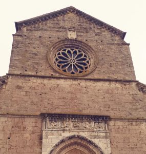 La primitiva e più austera e lineare facciata fu abbellita alcuni decenni dopo, con non rilevanti aggiunte alle porte laterali e al rosone, e con un nuovo portale in marmo.