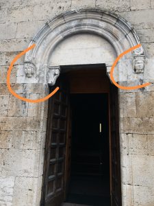 Si dice che i due volti scolpiti nella porta di sinistra (guardando la facciata) siano quelli dell’Imperatore e della madre di lui, Costanza d’Altavilla.
