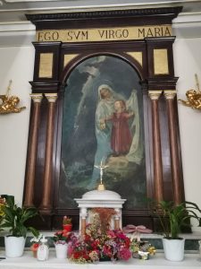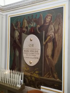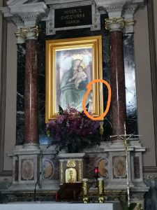 In fondo alla navata, prima del presbiterio, a sinistra si apre l’accesso alla Cappella dell’Apparizione.