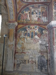 Lascio agli esperti decidere se e quando Giotto avrebbe potuto vedere questi affreschi – datati tra la fine del XII secolo e gli inizi del XIII, quindi più o meno un secolo prima delle sue opere di Assisi – nei suoi viaggi romani. Di certo è documentata una produzione giottesca a Roma durante il pontificato di Bonifacio VIII, in vista del Giubileo del 1300, per abbellire la Basilica costantiniana di San Pietro, successivamente completamente distrutta per fare posto all’attuale. Possibile che il Caetani non gli abbia suggerito di vedere la cripta della Cattedrale della sua città di origine?