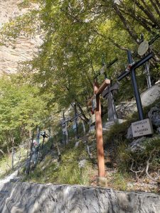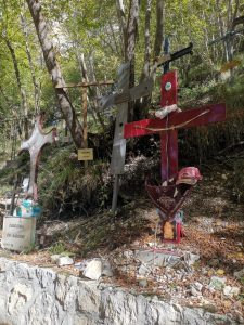 Ancora: più facile è che in queste montagne isolate si fossero insediati monaci ed eremiti orientali, fin dal IV secolo. Come che siano le origini, c’è che la devozione è sorprendente. Migliaia di croci, che ricordano pellegrinaggi lontani e recenti nel tempo, accompagnano l’ultimo tratto di strada – che si percorre a piedi – verso il Santuario.